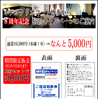 ただいまリニューアル8周年記念として宿泊回数券を販売しております。